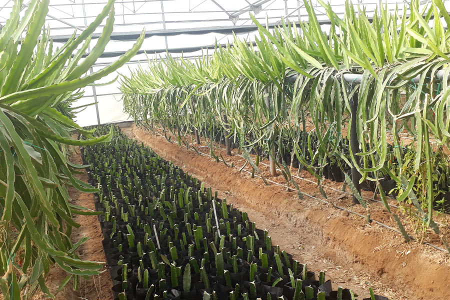 Ejder meyvesi serası, 6m makas açıklı tünellerin yan yana birleşmesi ile oluşan seralardı. Oluk altı yüksekliği 3m veya 3,5m olup isteğe bağlı şekilde oluk altı yüksekliği değişiklik gösterebilir.